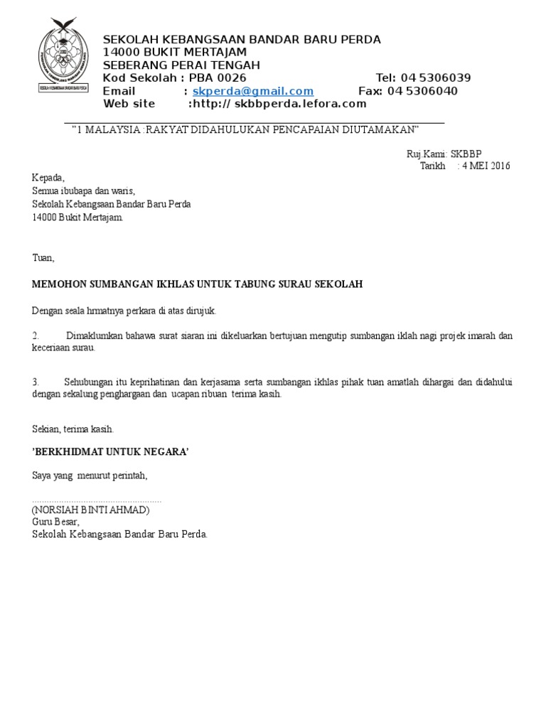 Informasi contoh surat mohon sumbangan surau sekolah.pdf Ada 3 halaman contoh surat mohon sumbangan surau sekolah ukuran A3 2.5MB. Surat memohon sumbangan surau sksk. surat mohon sumbangan naik taraf surau muip. surat mohon sumbangan wakaf baru pdf Lihat juga soal tentang contoh serta ulang lagi materi contoh surat mohon sumbangan surau sekolah